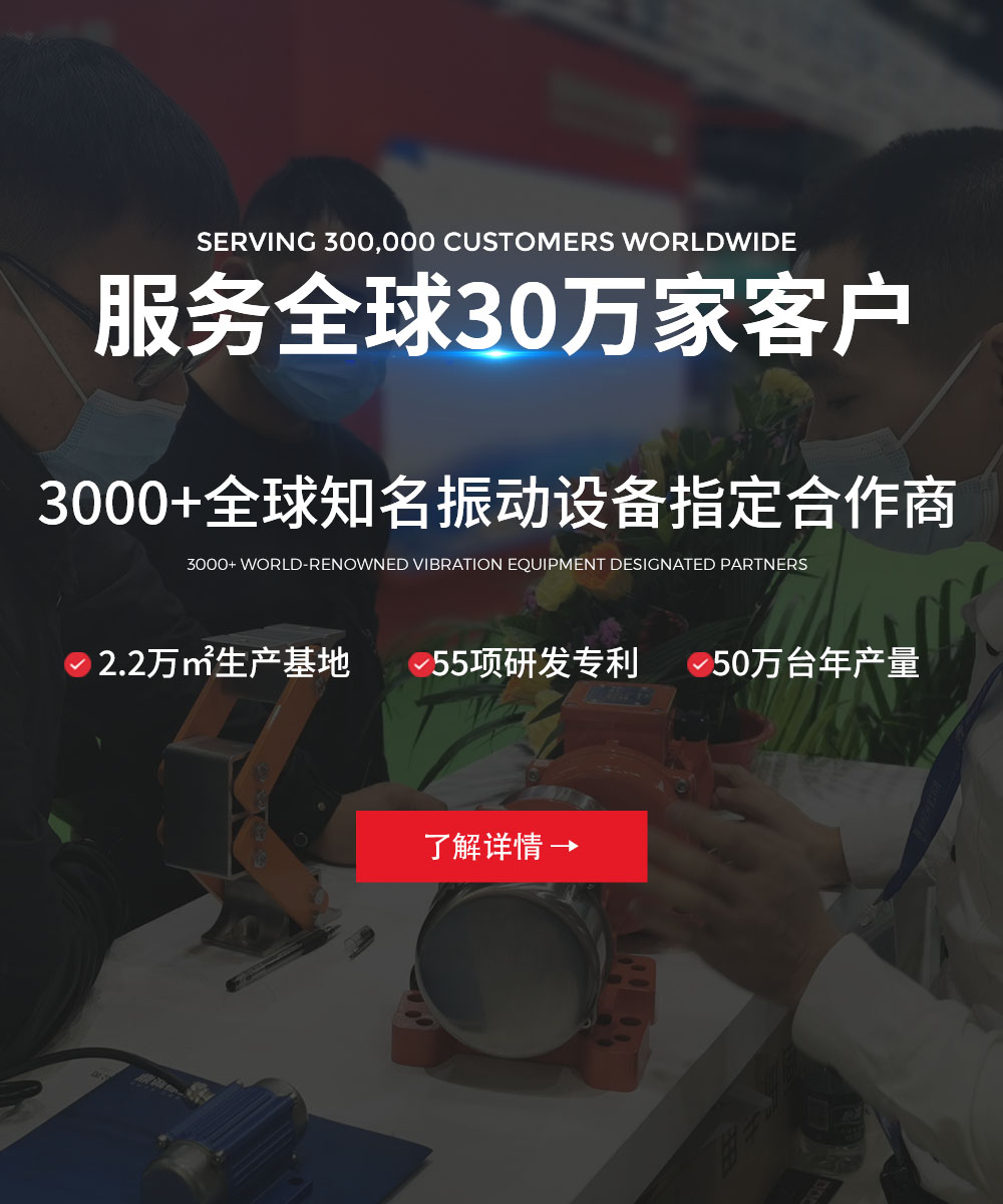 01 30年行業(yè)沉淀 · 實(shí)力廠家 振動電機(jī)設(shè)備贏領(lǐng)者